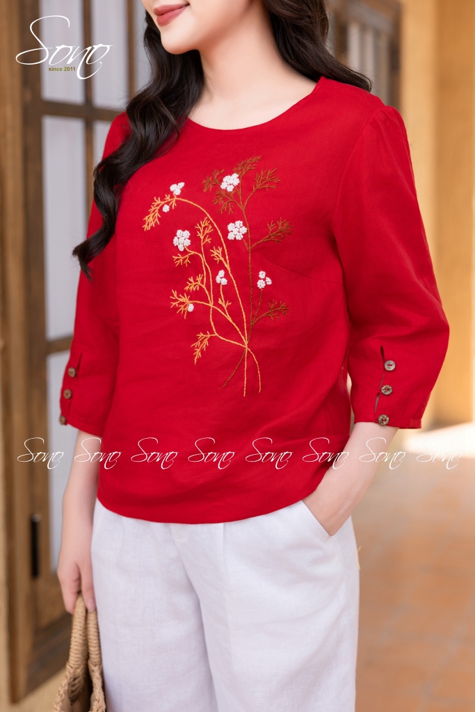 🌺 Set linen đỏ – trắng mang cảm giác ấm áp rất riêng: sắc đỏ không gắt, đủ làm gương mặt sáng hơn; họa tiết thêu tinh tế như điểm nhấn nhẹ nhàng cho những ngày đầu năm. Quần baggy linen trắng đứng form, dễ phối, giúp tổng thể cân đối và thanh thoát.