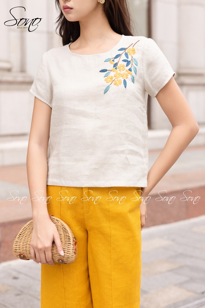 #chất liệu linen # hàng thiết kế # áo linen # áo chất liệu linen # áo kiểu # áo vẽ tay # áo thêu tay