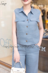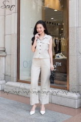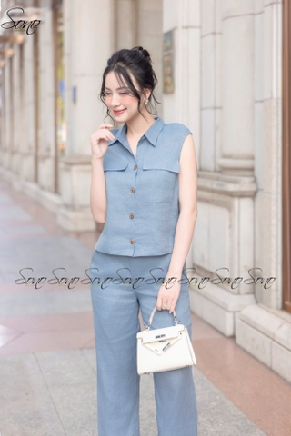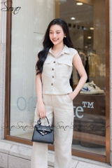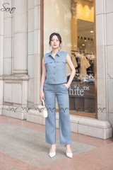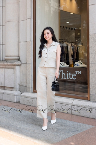 Thiết kế chuẩn trend – Áo dáng suông nhẹ có phối túi nắp, quần ống suông thanh lịch, giấu dáng cực đỉnh.