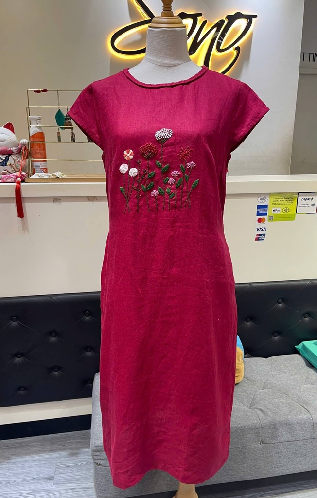 Thanh lịch và dịu dàng với đầm linen thêu tay