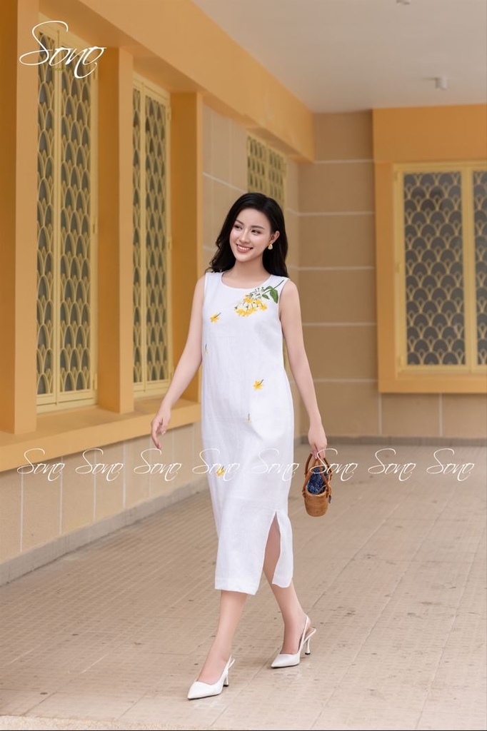 👗 Thiết kế tối giản nhưng cuốn hút trên nền linen tưng cao cấp, chi tiết thêu tay tỉ mỉ