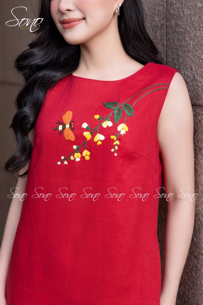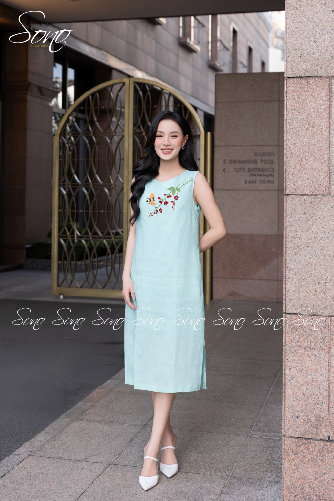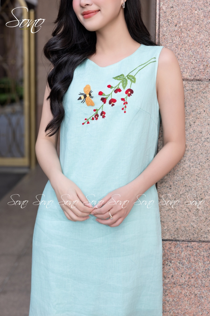 ✨✨Mẫu đầm linen của SONO được thêu tay thủ công tỉ mỉ, từng nhành hoa nhỏ như mang theo lời chúc an yên, sum vầy đầu năm. Dáng suông nhẹ nhàng, thoáng mát, tôn nét nữ tính và nụ cười rạng rỡ ngày Tết. Chỉ cần khoác lên mình chiếc đầm này, là thấy Tết đến rất gần – vui hơn, tươi hơn và thật háo hức đón năm mới