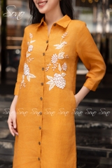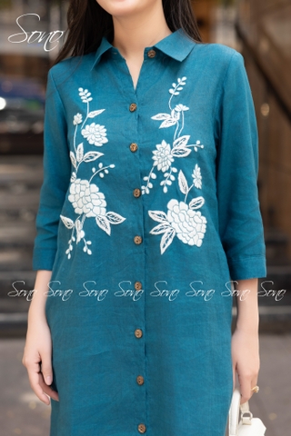 Nàng đang tìm một chiếc đầm vừa tinh tế vừa mang đậm phong cách nghệ thuật? Mẫu đầm linen xanh cổ vịt thêu tay hoa trắng và cam nổi bật này chính là sự lựa chọn hoàn hảo, kết hợp giữa nét đẹp hiện đại và sự duyên dáng truyền thống.